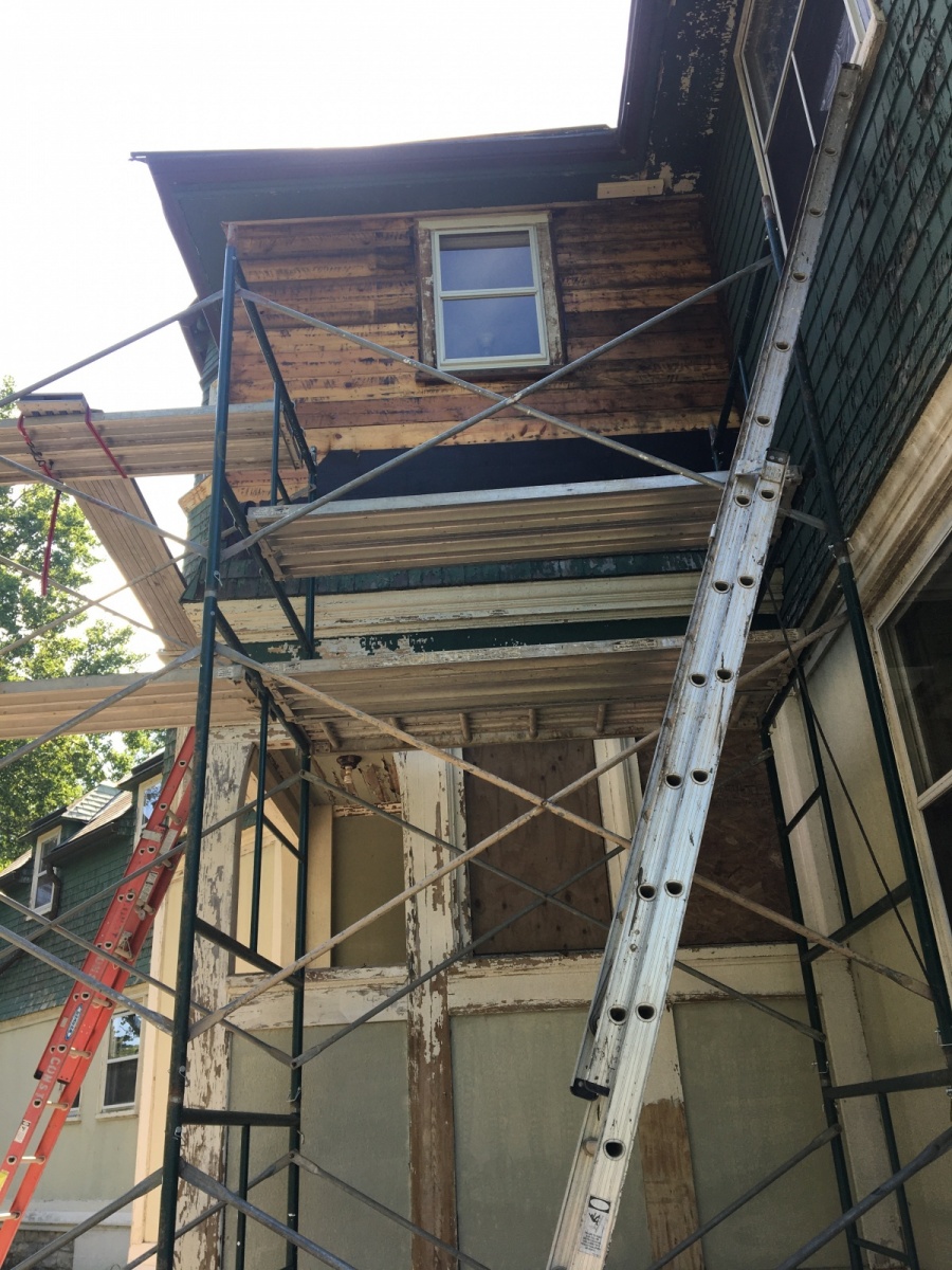 Good news – we met Milestone #4, which was a 23-page Initial Concept set of drawings produced by Cohen Hilberry Architects of St. Louis. Included were: diagrams for fire rating, acoustic and demolition; initial concept drawings for the site, plans for each floor of the manor plus the basement and roof, building elevations of each side, finish floor plans and a detailed schedule for repairing windows. The small field office was also included.